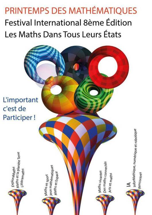 L'association Les Maths En Scène se consacre à la vulgarisation et à la diffusion de la culture mathématique et des sciences du numérique à travers des initiatives visant le grand public et les élèves. Chaque année, nous orchestrons le festival international incontournable intitulé "Printemps des mathématiques". Cet événement captivant est conçu pour mieux faire connaître et comprendre les mathématiques ainsi que leurs récentes avancées, tant auprès des élèves que du grand public. Le festival rassemble des chercheurs, des chercheuses, des doctorants, des doctorantes, des ingénieures, des artistes, des étudiants, des étudiantes, des enseignants, des enseignantes et bien d'autres encore, tous et toutes animés par une passion commune pour les mathématiques. Notre festival est un voyage à travers 12 pôles passionnants, illustrant les liens profonds entre les mathématiques, les arts, la culture, l'informatique, le développement durable, les sciences du numérique etc... Ces domaines ont envahi nos vies professionnelles et personnelles, et notre festival offre une exploration unique de ces intersections fascinantes.