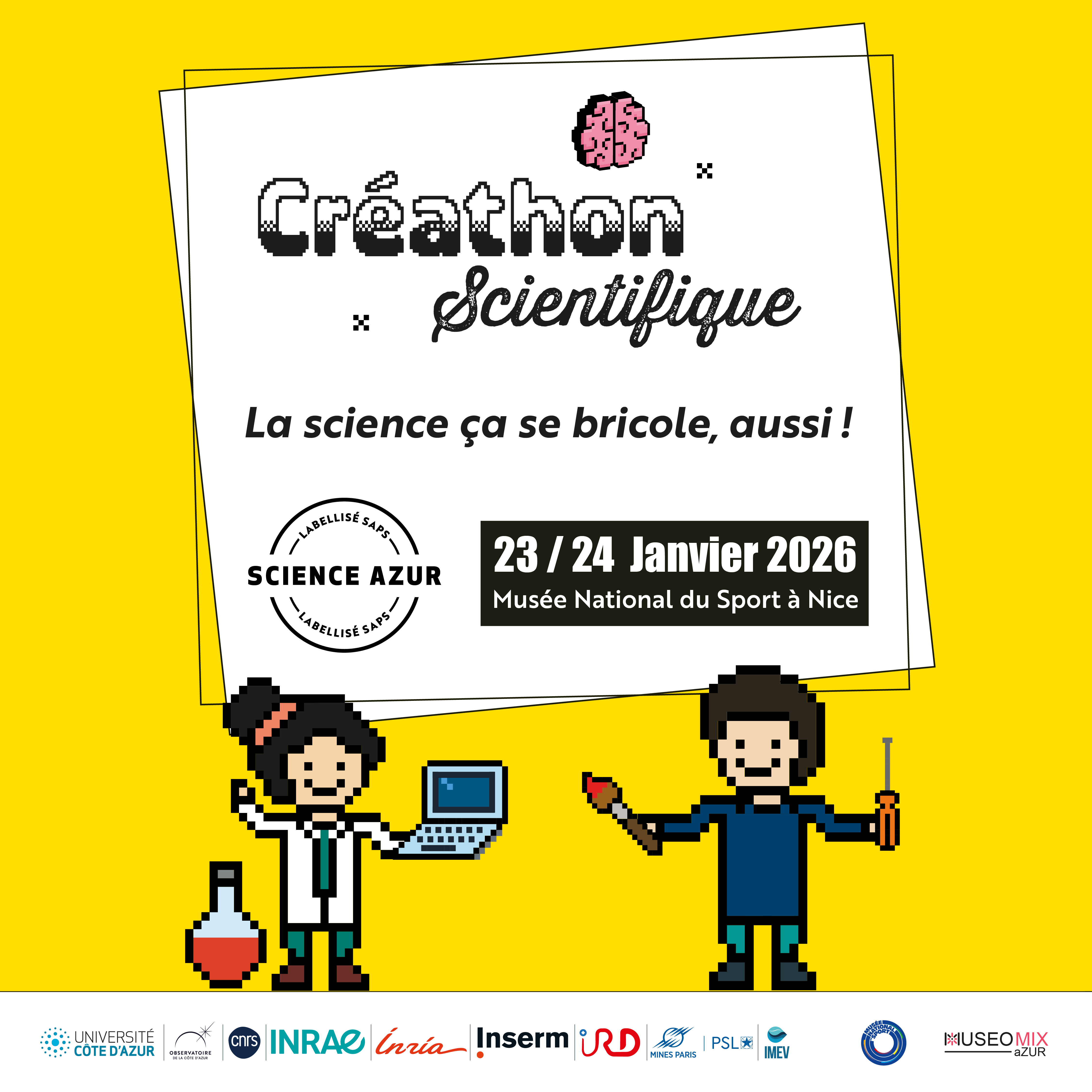 Vous êtes curieux, créatif, professionnel, étudiant, chercheur. Rejoignez une équipe les 23 et 24 janvier au Musée National du Sport à Nice dans le cadre du Créathon Scientifique.