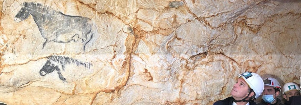 Une galerie de photos du chantier de la réplique de la grotte Cosquer dévoilant le dernier panneau représentant la fresque des chevaux dans l'équipement Cosquer Méditerranée. Bonne visio.