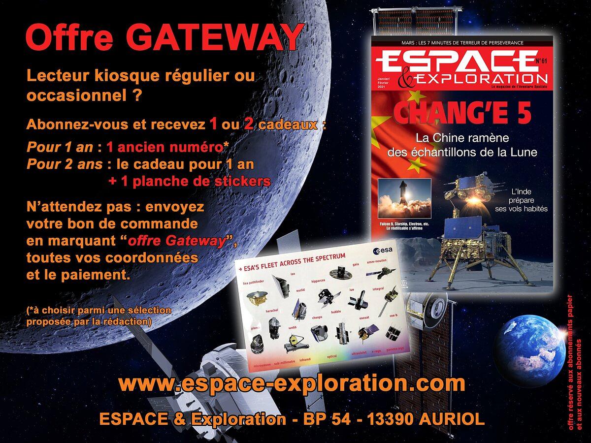 Rendez-vous sur notre site pour tout abonnement par CB ESPACE & Exploration rubrique kiosque et envoyer nous un email avec Offre GATEWAY en objet et votre nom pour bénéficier des cadeaux.