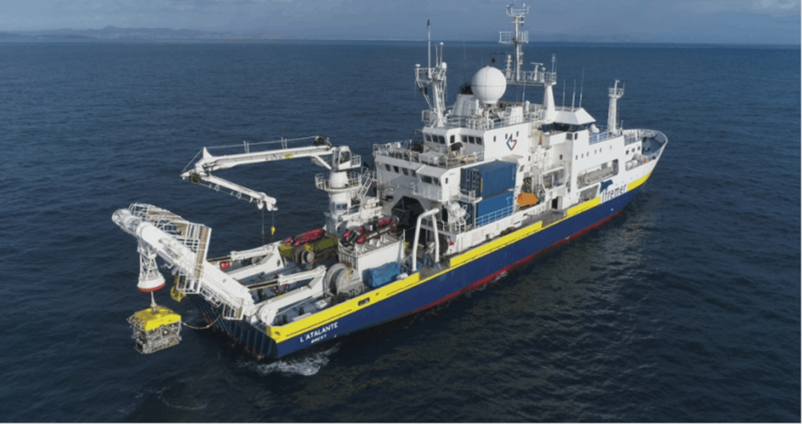 Photo : L’Atalante, navire hauturier de la Flotte Océanographique Française, de 85 mètres de long géré par l’Ifremer