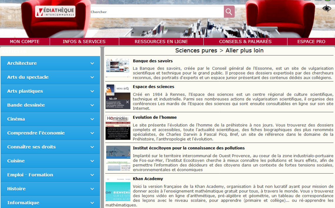 A la médiathèque intercommunale Istres Ouest Provence, ce sont près de 40 sitothèques (comprenant plus de 800 ressources de référence) qui sont ainsi produites par les bibliothécaires en charge des différentes collections (Informatique, Santé, Sciences, etc.) du réseau intercommunal.