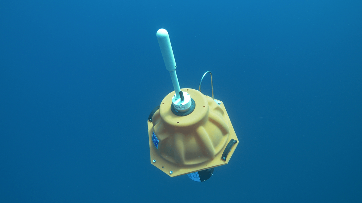 Figure 2 : Un flotteur Mermaid récemment lancée près de Tahiti envoie des données au satellite avant de replonger à une profondeur de 1500 m pour poursuivre sa surveillance sismique.