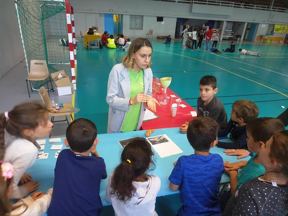 Nous avions Anais sur la lampe à lave, Gill sur l'alimentation durable, Cédric sur les illusions d'optique, Cécile sur les énergies renouvelables, Florian sur l'acidification des océans, Kimberley sur la vie sous l'eau, Edwige sur la démarche expérimentale, Marion sur les micro-plastiques des shampoings, Mathilde sur la biodiversité du sol et Maguelonne sur les systèmes écosystémiques... Un succès retentissant !!! Plus de 250 enfants ont pu manipuler, découvrir, s'émerveiller, apprendre, expérimenter... sur ces ateliers.