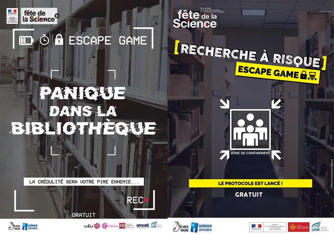 Dans le cadre du projet Sciences en médiathèque, Délires d’encre et Science Animation proposent de nouvelles sessions de formation aux Escape Games pédagogiques en visio-conférence : Recherche à risque et Panique dans la bibliothèque en grands groupes.