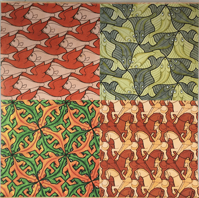 Les élèves ont commencé par une partie de recherche autour des pavages. D’abord, de point de vue mathématique : ils ont découvert les différents types de pavages et ont approfondi leurs connaissances des pavages réguliers (formés par un seul type de polygones réguliers). Ensuite, les élèves se sont intéressés à l’aspect artistique et leur utilisation surtout par M.C. Escher pour structurer ses peintures. Enfin, ils ont exploré l’utilisation des pavages dans l’architecture de plusieurs monuments, essentiellement dans la décoration de plusieurs palais historiques du monde musulman.