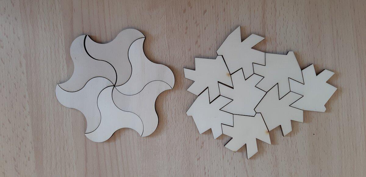 Lors de cette visite, les mailles imaginées par les élèves sur GeoGebra ont été découpées sur des plaques de bois à l’aide d’une découpe laser. Chaque élève est parti avec son propre pavage comme souvenir.