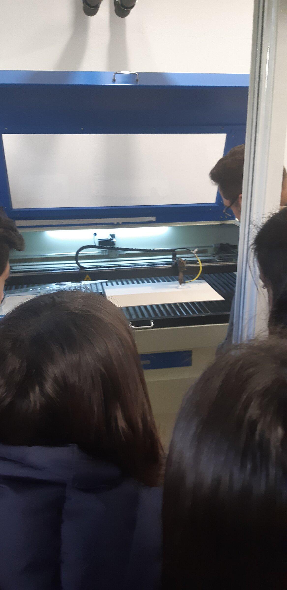 Plusieurs jeux et ateliers autour des pavages ont été préparé par le référent scientifique : les élèves se sont mis en groupe pour tester l’ensemble des ateliers et ils ont profité de l’occasion pour reproduire leurs mailles sur bois grâce à la découpe laser. Ils ont pu ainsi observer de près le fonctionnement de cette machine.