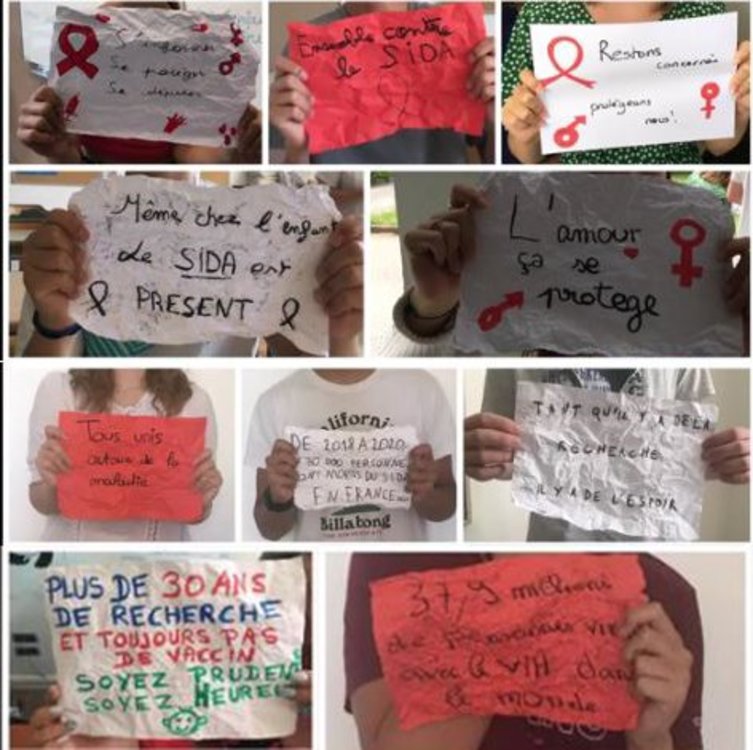 Suite à une séquence en classe de prévention contre le sida organisée par Madame Daillan, professeure de SVT, et Madame Vanhemelryck, infirmière, les élèves des classes de 3A, 3D, 3E et 3F ont réalisé une vidéo ayant pour objectif de sensibiliser leurs camarades sur cette maladie. Afin de faire passer leur message, les collégiens ont créé des slogans qu’ils ont mis en scène en « balançant leur boulette contre le sida ». Le projet ayant séduit les personnels, certains d’entre eux ont souhaité participer et s’allier à la prévention contre le sida.