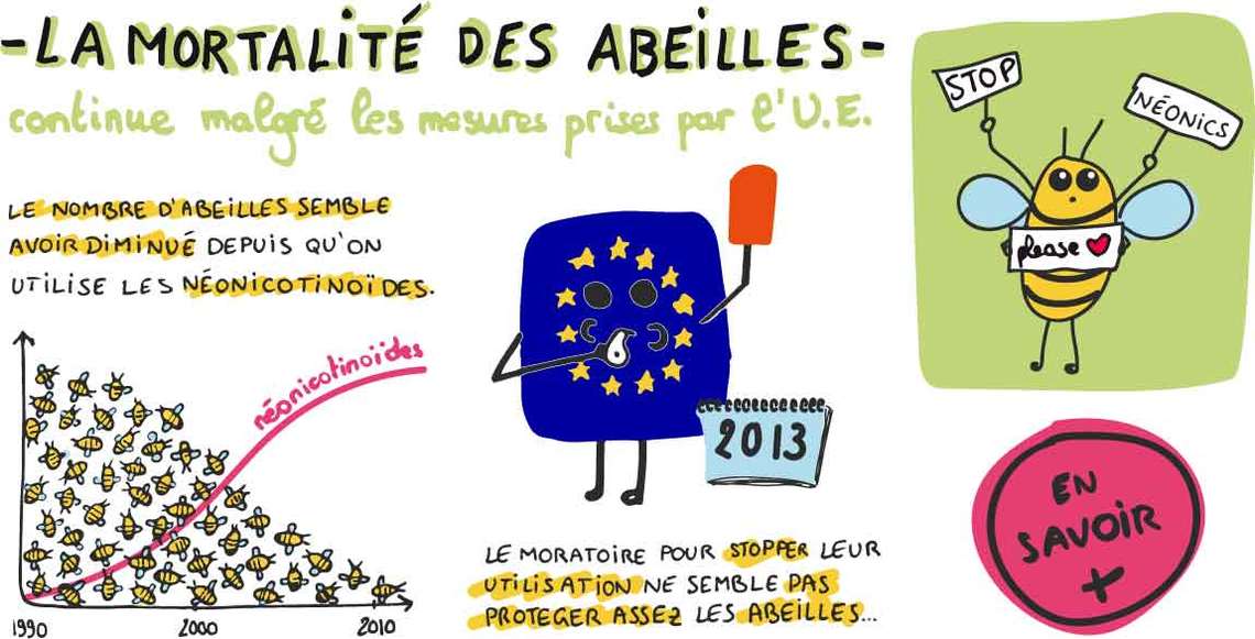 Pour notre rentrée nous faisons échos à l’actualité et notamment aux nouvelles mesures prises par le gouvernement cet été concernant l’usage des néonicotinoïdes. Nous vous proposons, au travers d’une nouvelle BD, de découvrir pourquoi les mesures prises en 2013 par l’Union Européenne n’étaient pas suffisantes pour protéger les abeilles…