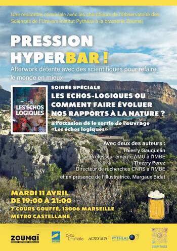 Tous les premiers mardis du mois (ou parfois le second !), d’avril à juillet, de 19h00 à 21h00, venez papoter avec des scientifiques et repenser (en mieux) notre rapport à l’environnement autour d’une bière de la brasserie Zoumaï qui accueille la nouvelle série de rencontres de cet afterwork marseillais original...