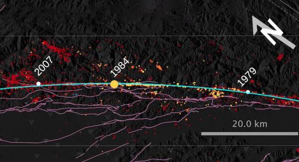 Mardi 4 juillet 2023 La relocalisation précise des séismes montre des failles présentant des surfaces lisses, planes ou arquées, sur des...