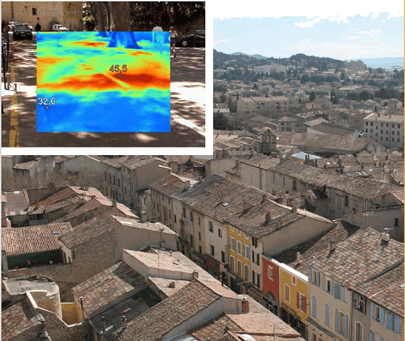 Températures de surface relevées par caméra thermique le 27 juin 2019 à Cucuron (source : Parc naturel régional du Luberon).