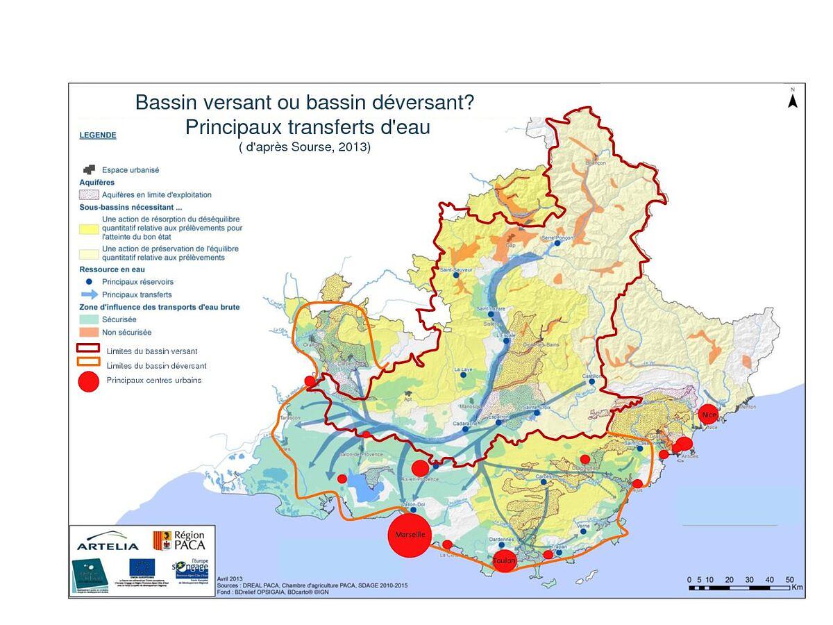 Les problématiques liées à l’eau sont caractérisées par l’importance vitale de cette ressource pour le développement des sociétés, par la multiplicité des usages (alimentation en eau potable, irrigation, énergie …) et donc des acteurs concernés, mais aussi par l’équilibre à trouver entre son utilisation et les besoins des milieux naturels (qualité des eaux, biodiversité). Cette ressource est fragile. Les experts du Groupe d’experts intergouvernemental sur l’évolution du climat (GIEC) prévoient, au cours du siècle à venir, une modification des précipitations, une diminution de la couverture neigeuse et de l’eau stockée dans les glaciers, ainsi qu’une altération de la qualité des eaux. En région Provence-Alpes-Côte d’Azur, ces prévisions viennent s’ajouter à une forte pression liée à la période de sécheresse estivale qui caractérise notre climat méditerranéen, mais aussi à l’évolution démographique, économique et urbaine qui conduit à un partage en tension de la ressource. Face à ces changements, qui auraient des conséquences graves sur les plans socio-économiques et environnementaux, les premières mesures d’adaptation ont déjà été mises en oeuvre.