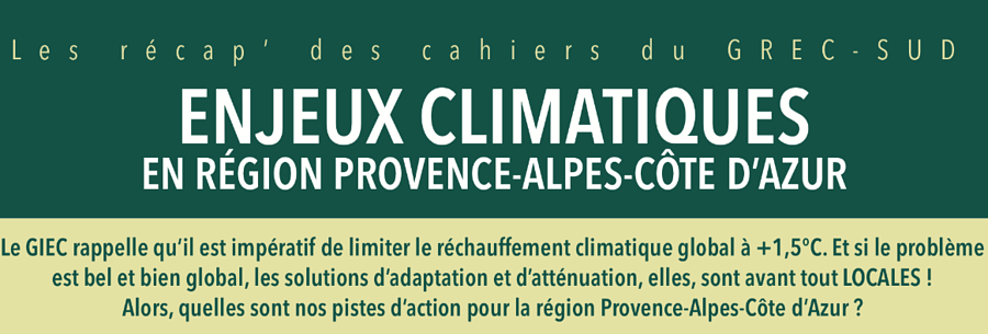 Le GREC-SUD propose une infographie présentant une synthèse des connaissances scientifiques sur le climat et des conséquences du changement climatique en région Provence-Alpes-Côte d'Azur. Elle offre un panorama des différents enjeux liés au changement climatique selon différentes thématiques : biodiversité, ville, santé, etc. L'état des connaissances illustrées dans cette infographie est basé sur les différents cahiers thématiques publiés par le GREC-SUD rédigés par des chercheurs et experts techniques. Pour accéder à l'infographie et la télécharger, cliquez sur l'image ci-dessous.