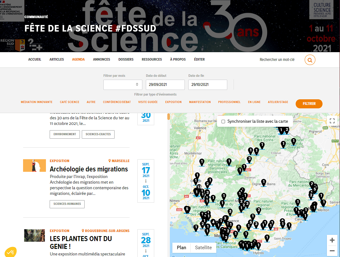 - les événements publiés sur Echosciences (Villages des Sciences, Médiation innovante, Conférences...)