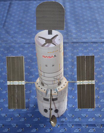 Maquette du télescope. La grande variété de rayonnements dans l’univers et les différents télescopes spatiaux avec quelques exemples et  maquettes.
