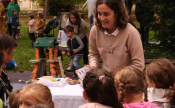 Atelier d'expérimentation animé par Hortense, animatrice de découverte de la biodiversité par le jeu.