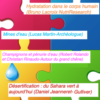 - Champignons et pénurie d’eau (Robert Rolando et M. Christian Rinaudo, mycologues - association Autour du Grand Chêne) : relations eau-champignon, effets climatiques sur le développement des champignons et enjeux...
