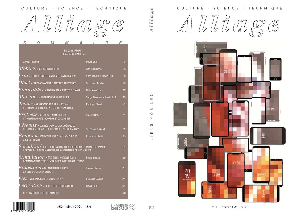 Ce numéro spécial de la revue Alliage est consacré à l'impact des nouvelles formes de communication (smartphones, réseaux sociaux numériques, etc.) entre les personnes sur leur lien à l’autre, au temps, au monde, à la réalité et ... à soi-même! Sciences de l'information et de la communication, anthropologie, psychologie, sociologie sont au rendez-vous. Mais aussi l'art car ce numéro est illustré par de nombreuses œuvres d'artistes que ces questions ont interpellés et qui, en outre, nous écrivent en quelques mots leurs ressentis.