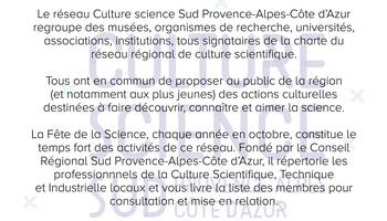 La diffusion de la culture scientifique en Provence-Alpes-Côte d'Azur est assurée par divers établissements dont les organismes de recherche, les...