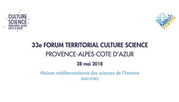 33e FORUM TERRITORIAL CULTURE SCIENCE PROVENCE-ALPES-COTE D'AZUR Lundi 28 mai novembre 2018 de 9h00 à 17h00 Maison méditerranéenne des sciences...