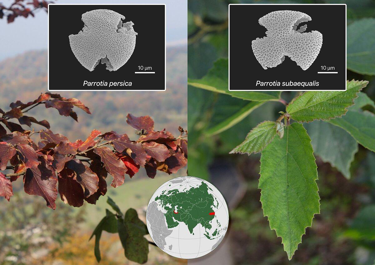 En effet, le Parrotie de Perse, encore appelé Arbre de fer (Parrotia persica C.A.Mey) fut pendant des décennies considéré comme la seule espèce du genre. Aujourd’hui cette espèce est endémique de la forêt hyrcanienne (sud de la mer Caspienne) mais fut autrefois très répandue sur le continent européen. Les pollens de Parrotia trouvés dans les archives sédimentaires étaient automatiquement affiliés à P. persica. Cela signifie également que tous les paramètres écologiques de P. persica étaient transposés dans les restitutions paléoécologiques. À vrai dire les pollens fossiles sont morphologiquement très proches en microscopie optique de ceux de l’espèce P. persica et il en va de même pour les feuilles fossilisées. Mais voici une dizaine d’années que l’existence d’une autre espèce, Parrotia subaequalis (Hung T. Chang) R.M.Hao & H.T. Wei, a été mise en évidence en Chine à plus de 600 km de la forêt caucasienne.