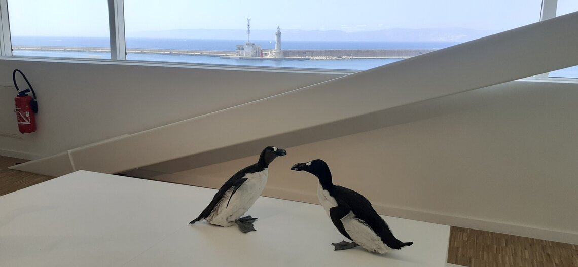 Découverte en 1985 par Henri COSQUER, enfouie à 37 mètres de profondeur dans le site marin des Calanques de Marseille, et débouchant après l'exploration d'une galerie longue de 150 mètres, la grotte préhistorique qui porte désormais son nom a été dévoilée au public ce samedi 4 juin. C'est un lieu majeur de l'histoire de l'art pariétal qui a été inauguré, en face du Mucem et de la mer Méditerranée, permettant à tous de le visiter à bord de modules d'explorations après une immersion virtuelle via un ascenseur figurant un caisson de plongée. 200 figures d'animaux marins, 70 empreintes de mains, 500 dessins et gravures, c'est 30 000 ans d'histoire qui s'offrent sur 3 niveaux jusqu'à effleurer la problématique de la remontée des eaux et des risques liés au changement climatique, notamment pour le panneau des petits chevaux proches de la surface de l'eau dans la grotte. L'absence de chuchotement pendant les 45 mn de visite témoignent d'une émotion partagée bien présente. Ces hommes préhistoriques qui ont décoré les parois de la grotte appartenaient à des cultures du gravettien soit il y a de 34 000 à 22 000 ans et de l'épigravettien de 22 000 à 10 000 ans avant le présent . L'environnement d'alors était très différent avec une ligne de côte à plusieurs kilomètres en raison d'un niveau marin bien plus bas que l'actuel. Les paysages étaient plus ouverts et les espèces animales adaptées au froid. Gageons que la grotte COSQUER soit un des tiers lieux de référence à venir d'animations de la culture science telle qu'elle est développée en Région sud et que nos étudiants (tarif étudiant absent pour l'achat de billet) y trouvent l'inspiration pour aller encore plus loin dans la quête de nos origines. Découvrez quelques images de la visite dont celle du phoque moine espèce de mammifère marin très rare désormais endémique de méditerranée aujourd'hui en voie d'extinction.
