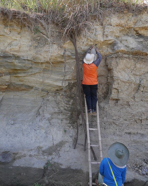 Image d’article : Vues des affleurements avec l’équipe scientifique franco-indonésienne.© Laurent Husson, ISTerre.