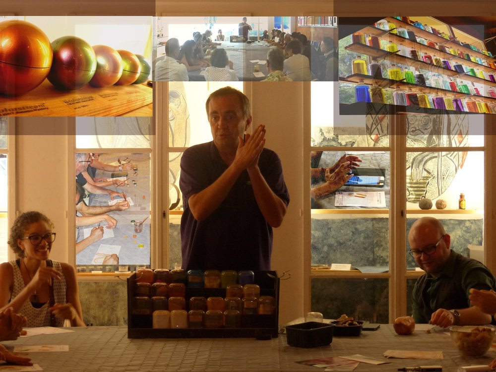 ... la couleur, c'est aussi le geste et la pratique. Les séminaristes sont invités à fabriquer leurs pigments et à laisser libre cours à leur créativité.