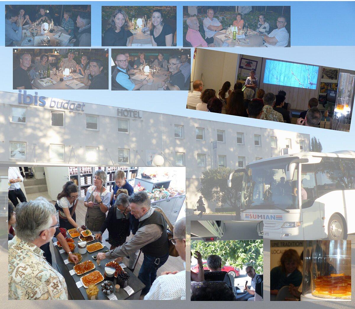 Départ à 8 heures de l'hôtel pour Apt et la visite de la Maison du fruit confit : historique de la maison, présentation des technologies et process utilisés, point R&D et...dégustation (copieuse pour certain.es). Aussi, à la demande des séminaristes et en guise d'intronisation, les quelques kilomètres de bus sur la route du Conservatoire des ocres et des couleurs de Roussillon sont mis à profit par Jean-Luc Parrain, directeur de recherche en chimie, désormais DRRT Adjoint, pour approfondir quelques notions sur les différents types de sucres.