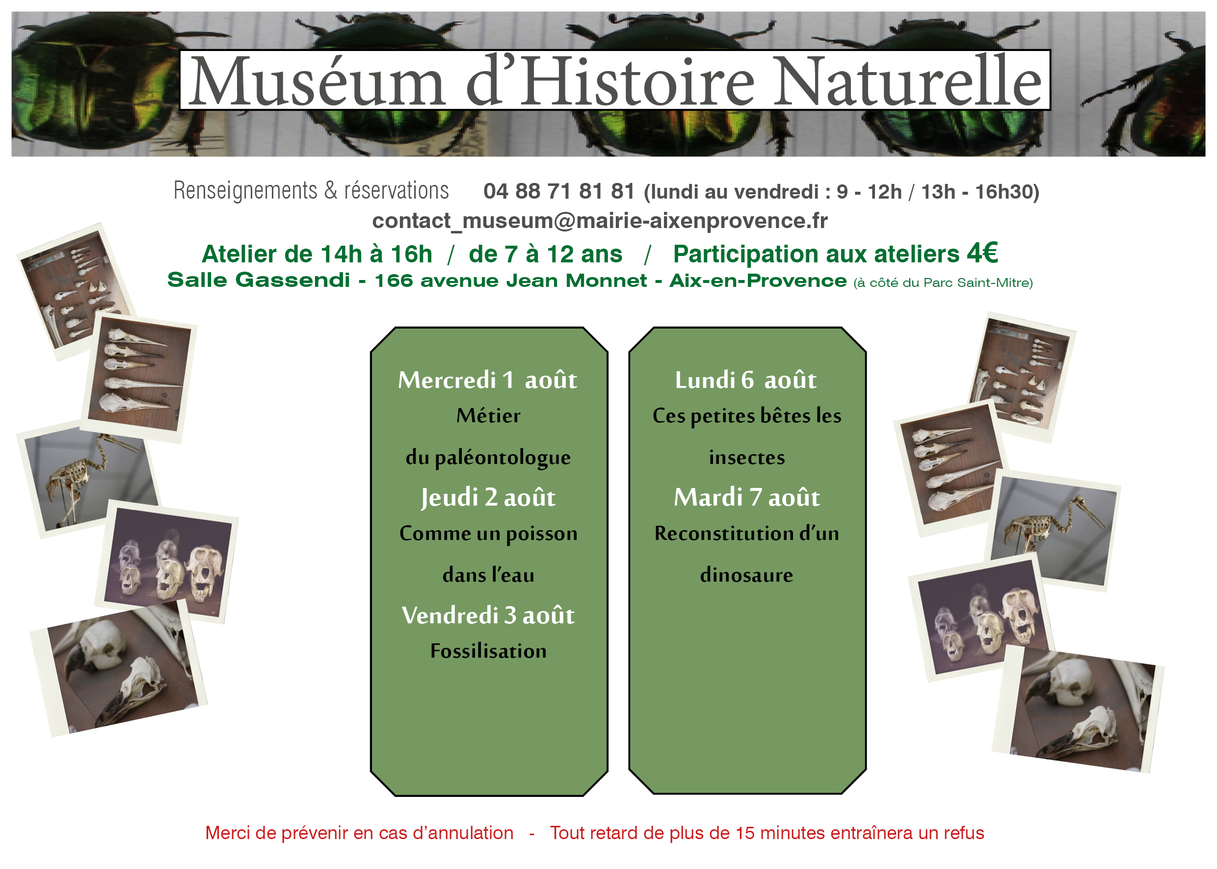 Le Muséum d'Histoire Naturelle d'Aix-en-Provence vous propose des ateliers pour les enfants de 8 à 12 ans.