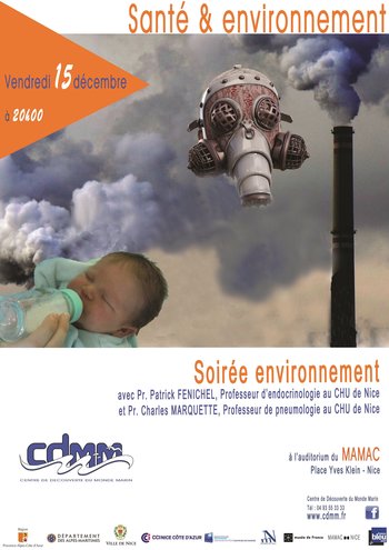 Patrick FENICHEL, Professeur d’endocrinologie au CHU de Nice, Responsable du Diplôme Universitaire de Médecine Environnementale à la Faculté de Médecine de Nice et Charles MARQUETTE, Professeur de pneumologie au CHU de Nice tenteront de répondre à toutes ces interrogations lors de la conférence organisée par le Centre de Découverte du Monde Marin le vendredi 15 décembre 2017 à 20h00 au MAMAC à Nice.