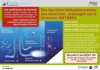 Ce mois-ci, une conférence donnée par Christian Tamburini, océanographe microbien à l’Institut Méditerranéen d’Océanologie (MIO), directeur de recherche CNRS et Stéphanie Escoffier, physicienne au Centre de Physique des Particules de Marseille (CPPM), directrice de recherche CNRS.