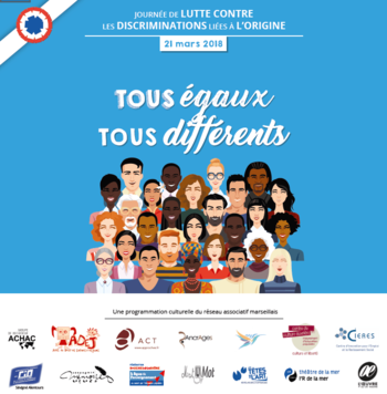 Un évènement proposé en partenariat avec le Théâtre de l’Œuvre, le Théâtre de la mer, ACT, Ancrages, la Fédération des AIL, Mot à Mot et les Têtes de l’Art, et le tissu associatif socioculturel marseillais dans le cadre de la Semaine d’éducation et d’actions contre le racisme et l’antisémitisme de la DILCRAH #TousUnisContreLaHaine du 19 au 25 mars 2018 et pour la Journée de Lutte contre les discriminations liées à l’origine le 21 mars.