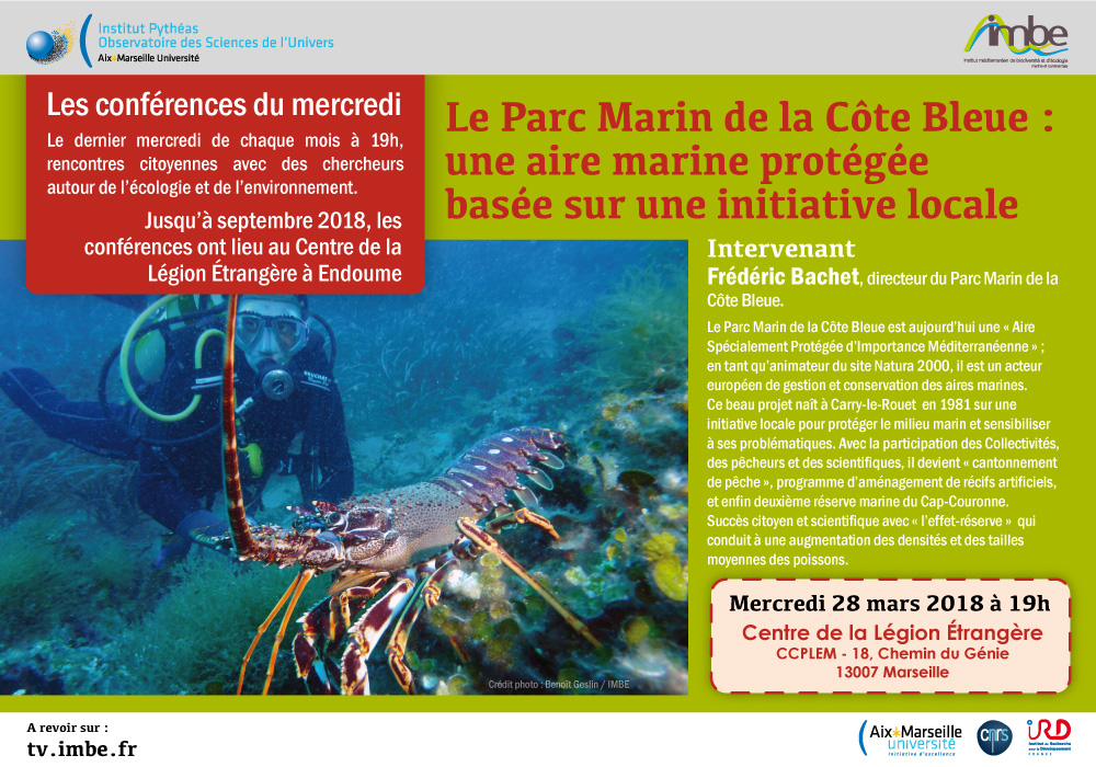 Ce mois-ci, une conférence donnée par Frédéric Bachet, directeur du Parc Marin de la Côte Bleue.