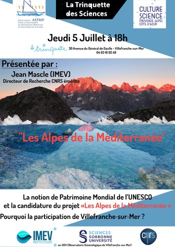 Une conférence grand public dans la série "La Trinquette des Sciences", organisée par l'Institut de la Mer de Villefranche-sur-Mer (IMEV, ex Observatoire Océanologique de Villefranche) présentée par Jean Mascle, Directeur de Recherche Emérite au CNRS et collaborateur bénévole de Sorbonne-Université.