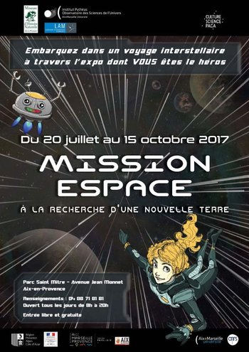 Du 20 juillet au 15 octobre au Parc Saint-Mitre à Aix-en-Provence, visitez cette exposition dont VOUS êtes le héros, réalisée par l’OSU Institut Pythéas et prenez les commandes de la « Mission Espace » pour un voyage interstellaire à la recherche de nouvelles planètes habitables.