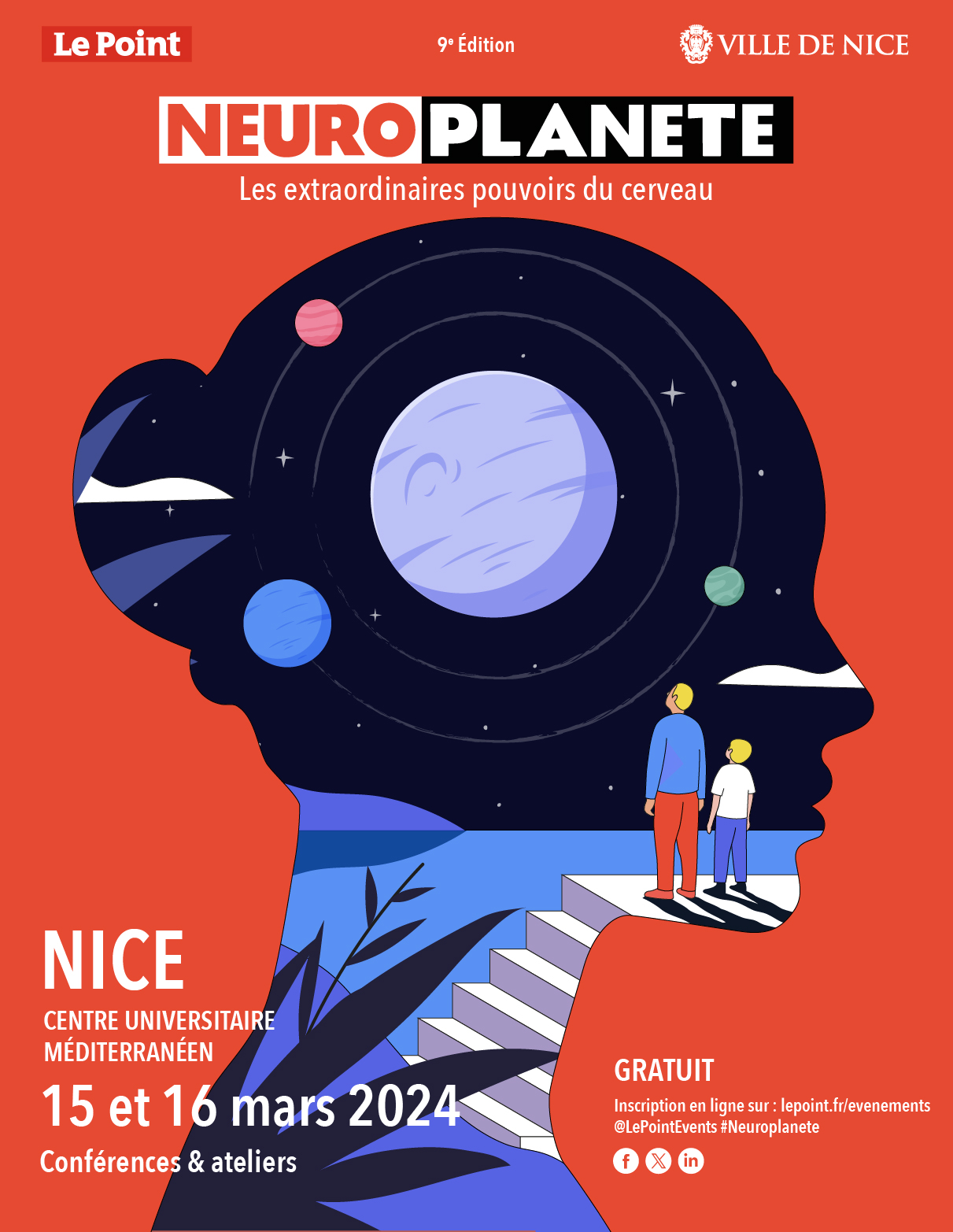 La 9e édition de Neuroplanète organisée par Le Point en collaboration avec la Ville de Nice se tiendra du 14 au 16 mars prochain à Nice. Retrouvez une session en “avant-première” dès le 14 mars au Galet à Nice, ainsi que deux journées de conférences et ateliers les 15 et 16 mars au Centre universitaire Méditerranéen. Chaque année, cet événement réunit des spécialistes : chercheurs, médecins neurologues, ORL, comédiens ou encore philosophes dans le but d'approfondir notre compréhension du rôle et du fonctionnement de nos sens. Ce forum dédié au cerveau et aux neurosciences est gratuit et accessible à tous sur inscription.