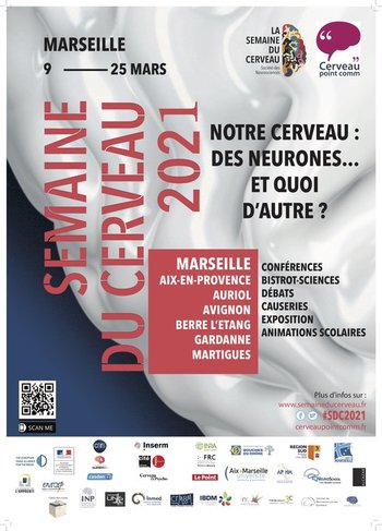 L'association Cerveau Point Comm vous a concocté un beau programme pour l'édition 2021 de la Semaine du Cerveau à Marseille. Nous vous donnerons une vision plus intégrative du fonctionnement du cerveau en mettant en lumière le rôle joué par l’ensemble de ses cellules, notamment les cellules gliales, toutes aussi importantes que les neurones, et pourtant injustement méconnues. D’autres sujets d’actualité seront également abordés.