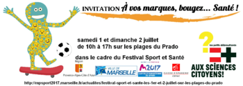 Et oui mesdames et messieurs, la nouvelle exposition "A vos marques, bougez... santé !" va être inaugurée ce samedi 1 et dimanche 2 juillet sur les Plages du Prado à l’occasion du Festival Sport et Santé organisée par la ville de Marseille.
