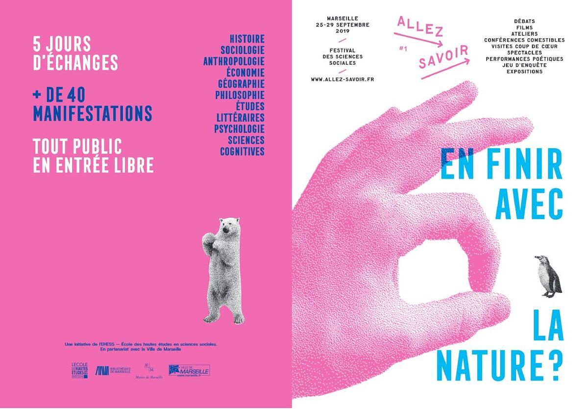Allez Savoir, le Festival des Sciences Sociales est une initiative de l'EHESS en partenariat avec la Ville de Marseille. Du 25 au 29 septembre prochain, 100 intervenants, des chercheurs, artistes, poètes, journalistes, lycéens, acteurs de la société civile y animeront plus de 40 manifestations en entrée libre sur le thème "En Finir avec la Nature ?".