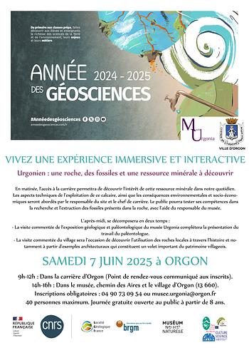 L'accès à la carrière d’Orgon permettra de découvrir l’intérêt de cette ressource minérale dans notre quotidien. Les aspects techniques de l’exploitation de ce calcaire, ainsi que les conséquences environnementales et socio-économiques seront abordés par le responsable du site et le chef de carrière. Le public pourra également tester ses compétences dans la recherche et l’extraction des fossiles présents dans la roche, avec l’aide du responsable du musée. Chaque participant sera ainsi confronté, in situ, aux difficultés et à la rigueur du travail du paléontologue sur le terrain.