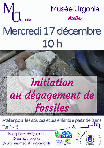 • Mercredi 17 décembre, 10h-12h, « Atelier de dégagement de fossiles » (8 ans et plus et adultes – 5 euros)