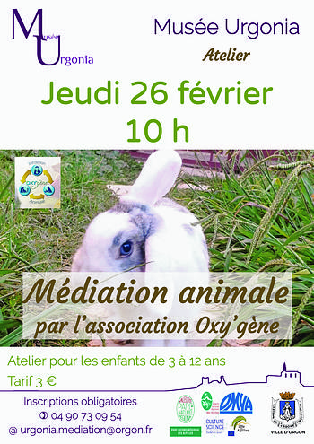 L’association Oxy’gène proposera aux enfants âgés entre 5 et 12 ans un temps de médiation animale afin de leur apprendre à créer une relation seine, apaisée et respectueuse des animaux (lapins, chien, cochons d’inde)
