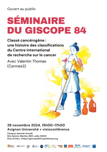 Le GISCOPE 84 organise une séance de son séminaire de recherche, ouverte au public, le jeudi 28 novembre 2024 à Avignon et en visioconférence avec pour invité le sociologue Valentin Thomas qui abordera la question de la classification des substances cancerogènes.