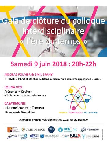 Ce colloque, intitulé « L’ère du Temps », se déroule à Nice, du 7 au 9 Juin 2018. Il réunit pour la première fois dans la région niçoise des physiciens, biologistes, sociologues, ethnologues, informaticiens, philosophes et artistes afin de partager et d’étayer avec le public leurs réflexions sur le concept majeur du Temps.