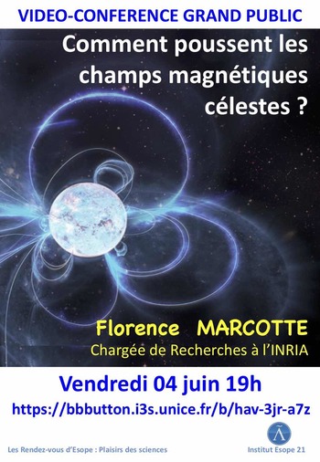 Florence Marcotte, Chargée de Recherches à l’INRIA, nous présentera la conférence : « Comment poussent les champs magnétiques terrestres ?  ».