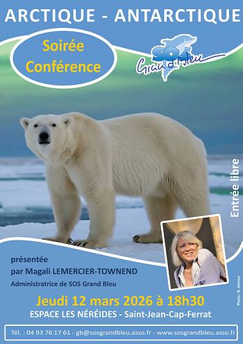 L'association SOS Grand Bleu vous propose sa prochaine soirée : « Arctique – Antarctique », présentée par Magali Lemercier-Townend, Administratrice de SOS Grand Bleu.