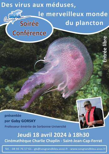 L'association SOS Grand Bleu vous propose sa prochaine conférence-diaporama intitulée : « Des virus aux méduses, le merveilleux monde du plancton », présentée par Gaby Gorsky, Professeur émérite de Sorbonne-Université.